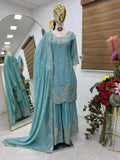 🔵©️ *ZF-Series New Designer Party Top Pallazo & Dupatta Set👗* ®️🟢