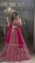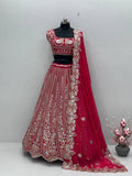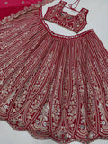 *BRIDAL WEAR HEAVY FUAX GEORGETTE CHINE SEQUENCE WORK LEHENGAS CHOLI WITH DUPATTA*